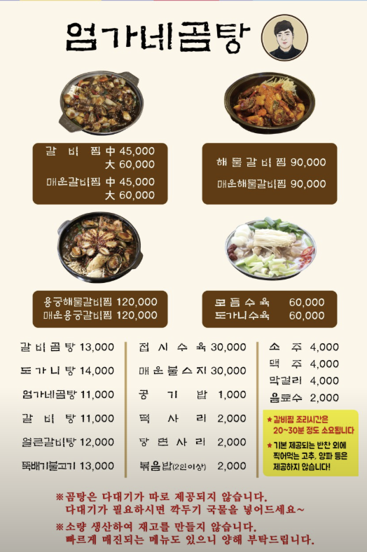 이 집의 핵심 메뉴는 바로 ‘갈비곰탕’과 ‘해물갈비찜’. 박찬호 선수가 12년간 방문하며 단골이 되었고, 그를 위해 만든 ‘해물 버전 갈비찜’은 현재 매장에서 간판 메뉴로 자리잡고 있어요. 그야말로 레전드 단골의 탄생 비화가 담긴 메뉴죠!