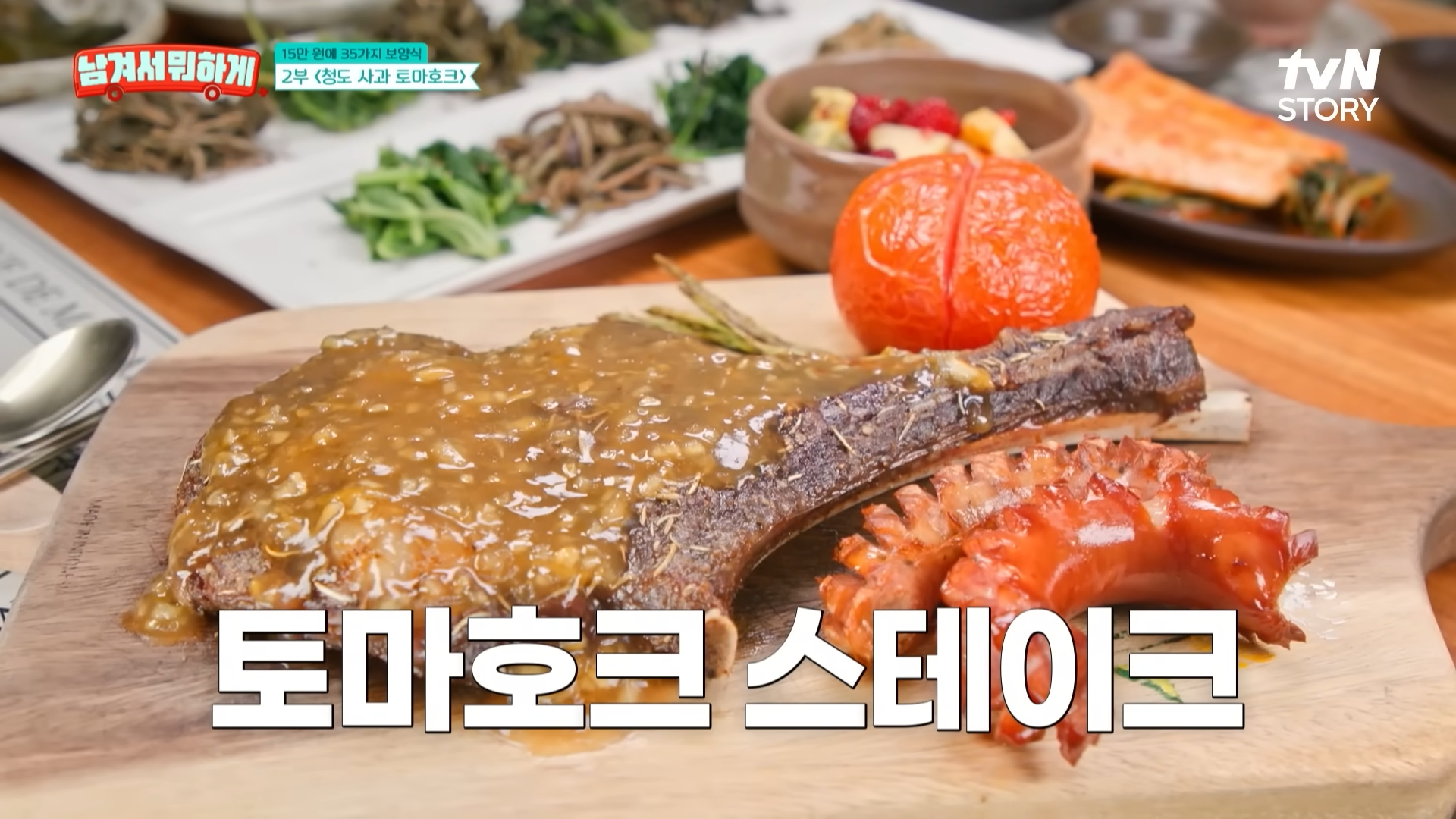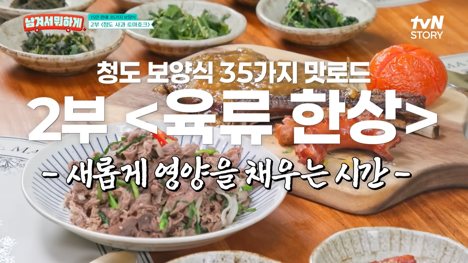 | 2부 | 칡묵, 지리산 염소불고기, 토마호크, 미나리 샐러드 | 산야초와 고기 조합의 영양식 |