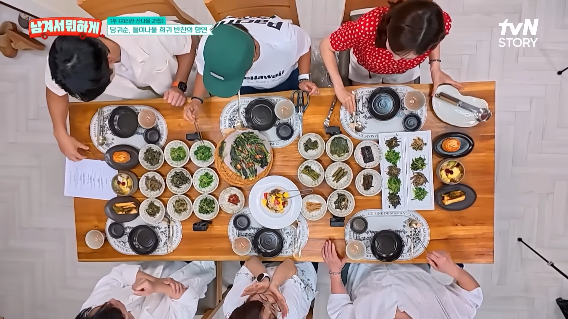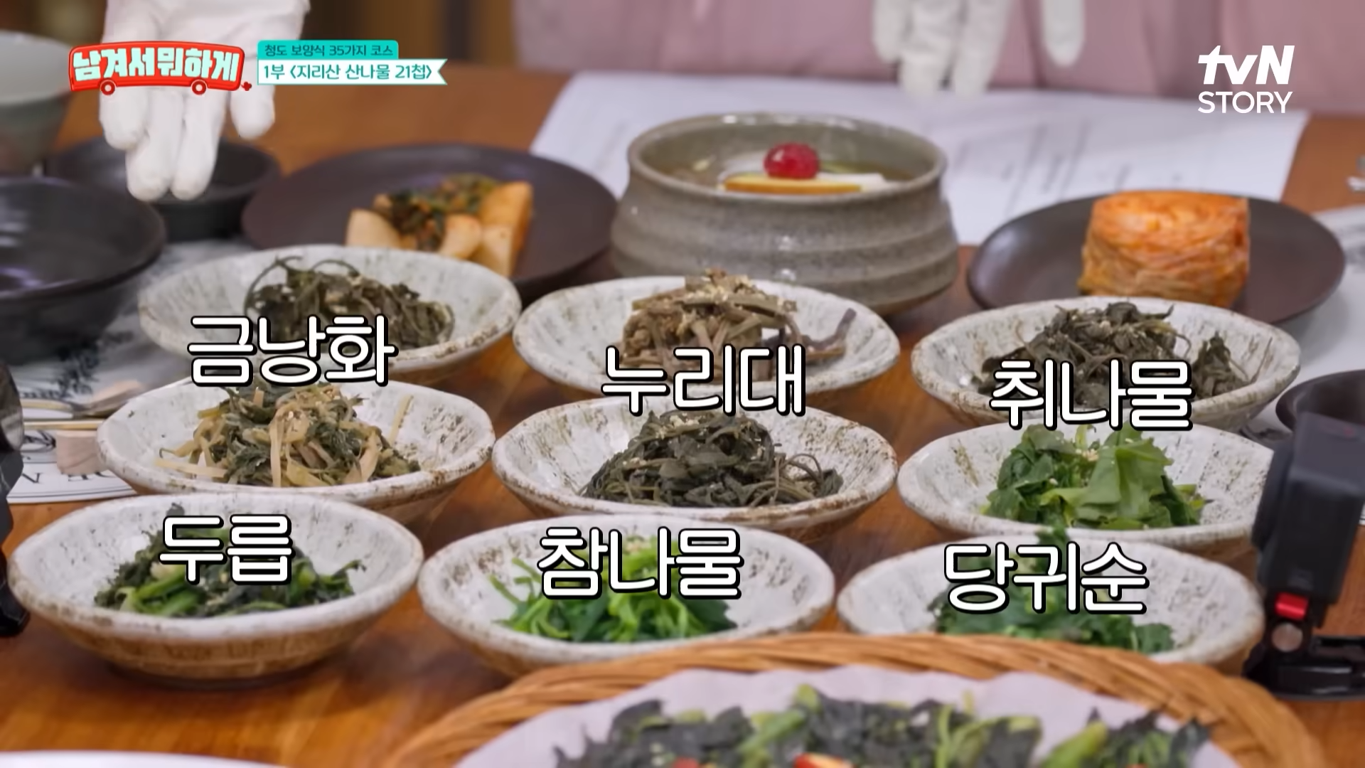 | 1부 | 21가지 반찬, 두릅전, 표고탕수육, 수제막걸리 | 직접 담근 장아찌와 봄나물 중심 |