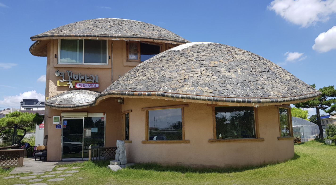 외관은 오래된 시골집처럼 소박하면서도 정갈하고, 입구 앞에는 싱그러운 초록 연잎과 연꽃이 자라는 정원이 펼쳐져 있어요. 계절마다 풍경이 달라지기 때문에 사계절 내내 각기 다른 아름다움을 느낄 수 있죠.