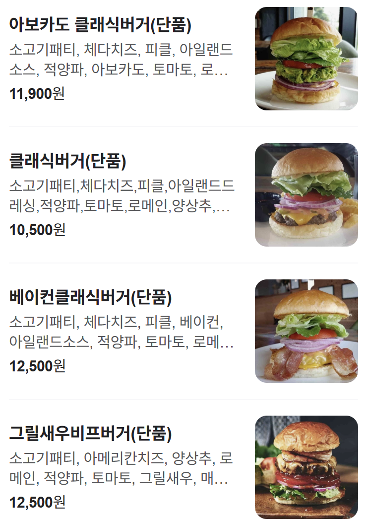 | 메뉴명 | 특징 | 가격 |