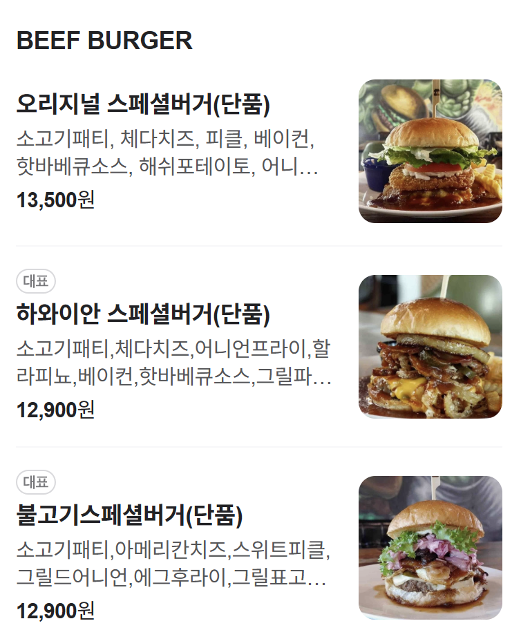 하와이안 스페셜버거 (12,900원)