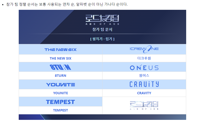 제가 얼마 전 로드 투 킹덤에 대한 소개를 해드렸었는데 전체적인 팀명과 세부 내용은