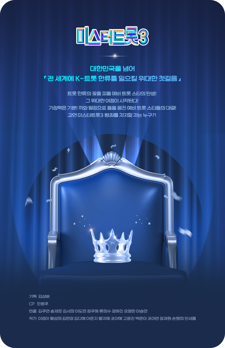 K-트롯 한류의 위대한 첫 걸음! 💙미스터트롯3💙 12월 19일 목요일 밤 10시 첫 방송🎙️ 전국 팬심 쟁탈쇼! 💖미스쓰리랑💖 매주 수요일 밤 10시 방송🙌