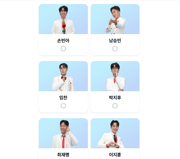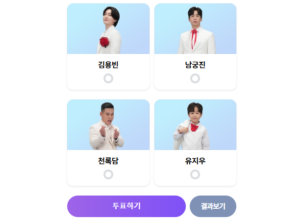 - 원하는 참가자를 선택 후 ‘투표 완료’ 버튼을 클릭하면 끝!