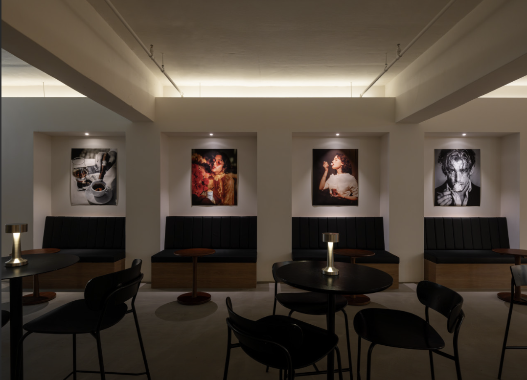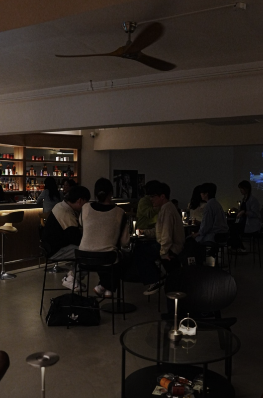 밤 시간대에는 조명이 더 낮아지고, 마치 위스키 바에 앉아 있는 듯한 기분이 듭니다. 손님들끼리 대화 소리가 크게 울리지 않도록 테이블 간 간격이 넓게 배치된 점도 인상적이에요.