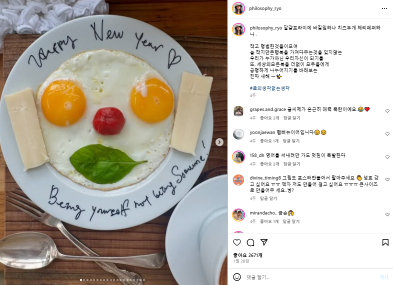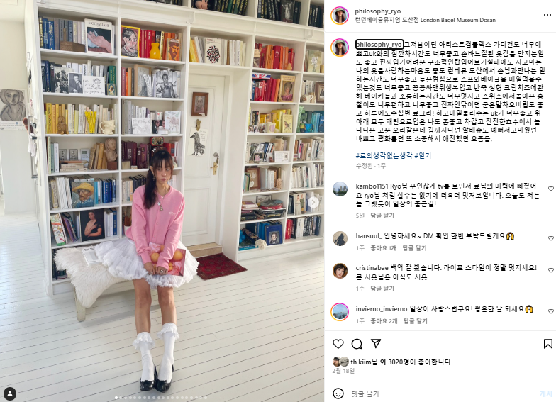 A5. 료 대표의 인스타그램 계정은 @philosophy_ryo예요. 그녀만의 감각적인 감성이 담긴 피드를 확인할 수 있어요.