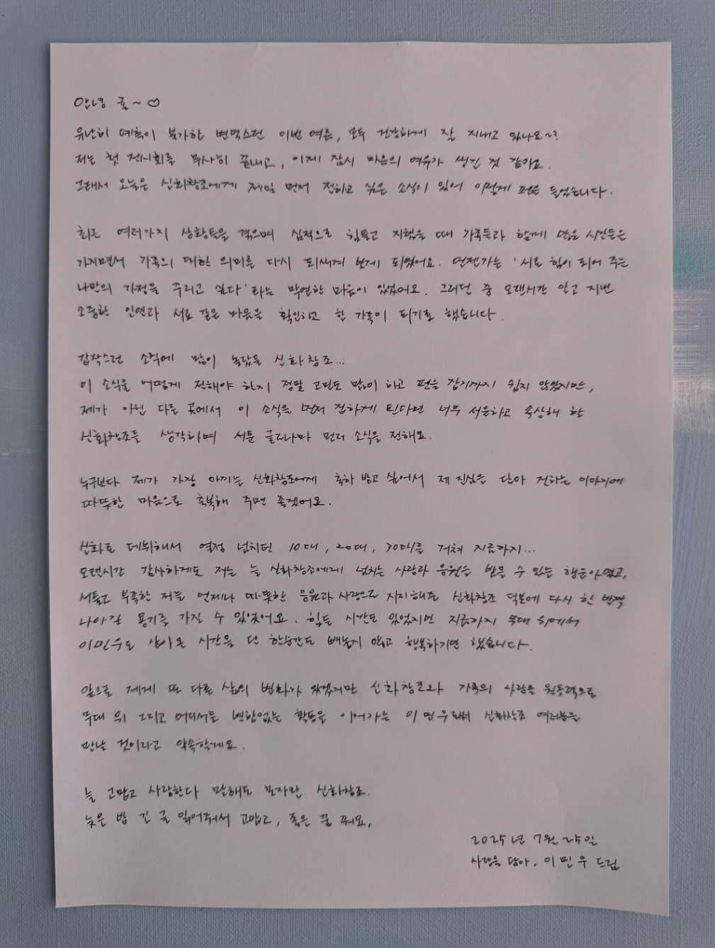 그리고 결혼하실 분 너무너무 예뻐요^^. 진심으로 이민우씨 부모님과 새로운 가족 모두 행복하시길 바라는 마음이에요.