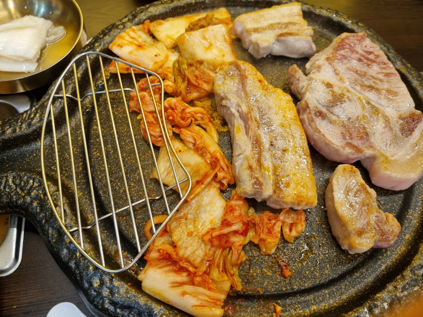 고기가 구워지지도 않았는데 급하게 뒤집어서 나한테 혼나는 중 ㅎㅎ.