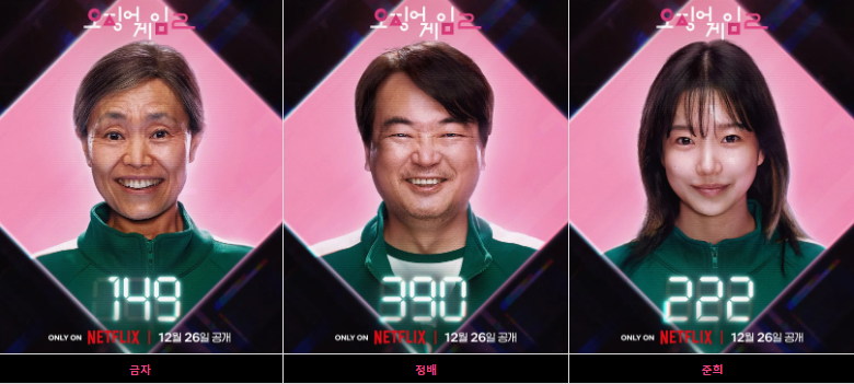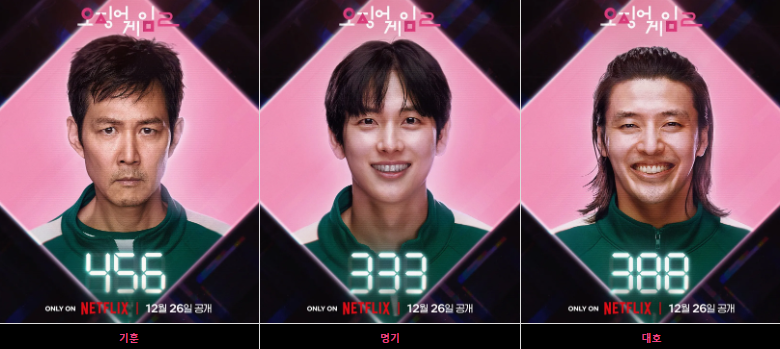 - 성기훈(이정재): 시즌 1 우승자. 게임의 배후를 파헤치고 복수를 다짐하며 다시 게임에 참여합니다.