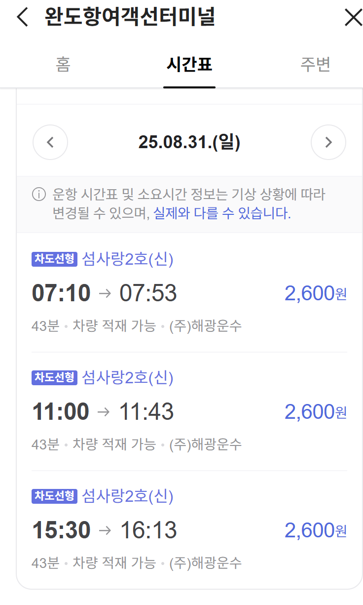 Q3. 소모도에 가는 배는 하루 몇 번 있나요?
