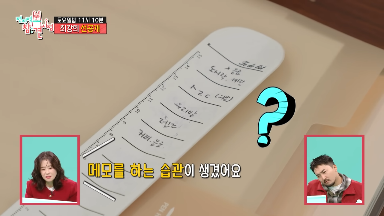 최강희 님의 메모 습관은 ‘메모’라는 단순한 행동이 일상에서 어떤 큰 변화를 만들어낼 수 있는지 보여줍니다. 중요한 일정이나 할 일을 쉽게 기록해두면 빠르게 확인할 수 있어 실수가 줄어들고 일정을 더 효율적으로 관리할 수 있어요. 게다가 손목에 착용하는 형태라 쉽게 접근 가능해 일상 속 자주 활용할 수 있다는 점이 큰 장점입니다. 일상적으로 중요한 메모를 손목에 남기는 습관은 특히 자주 잊어버리는 성향이 있는 사람들에게 매우 유용할 거예요.