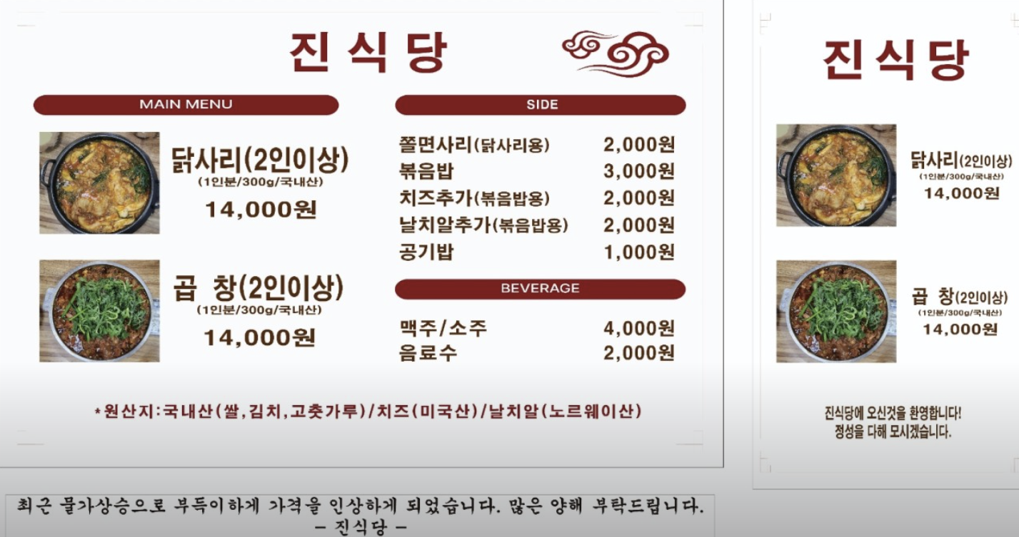 📋 진식당 메뉴판 요약