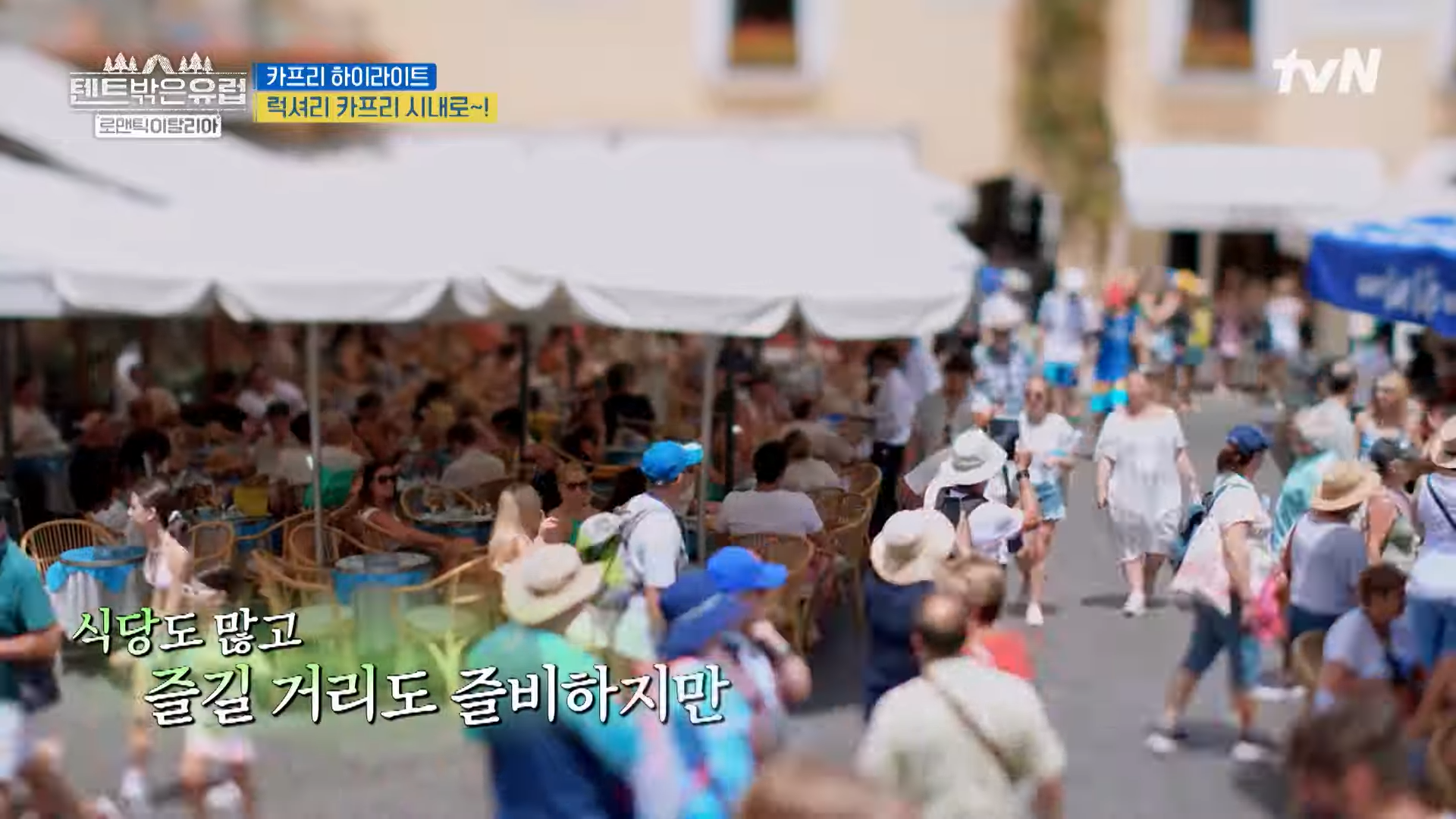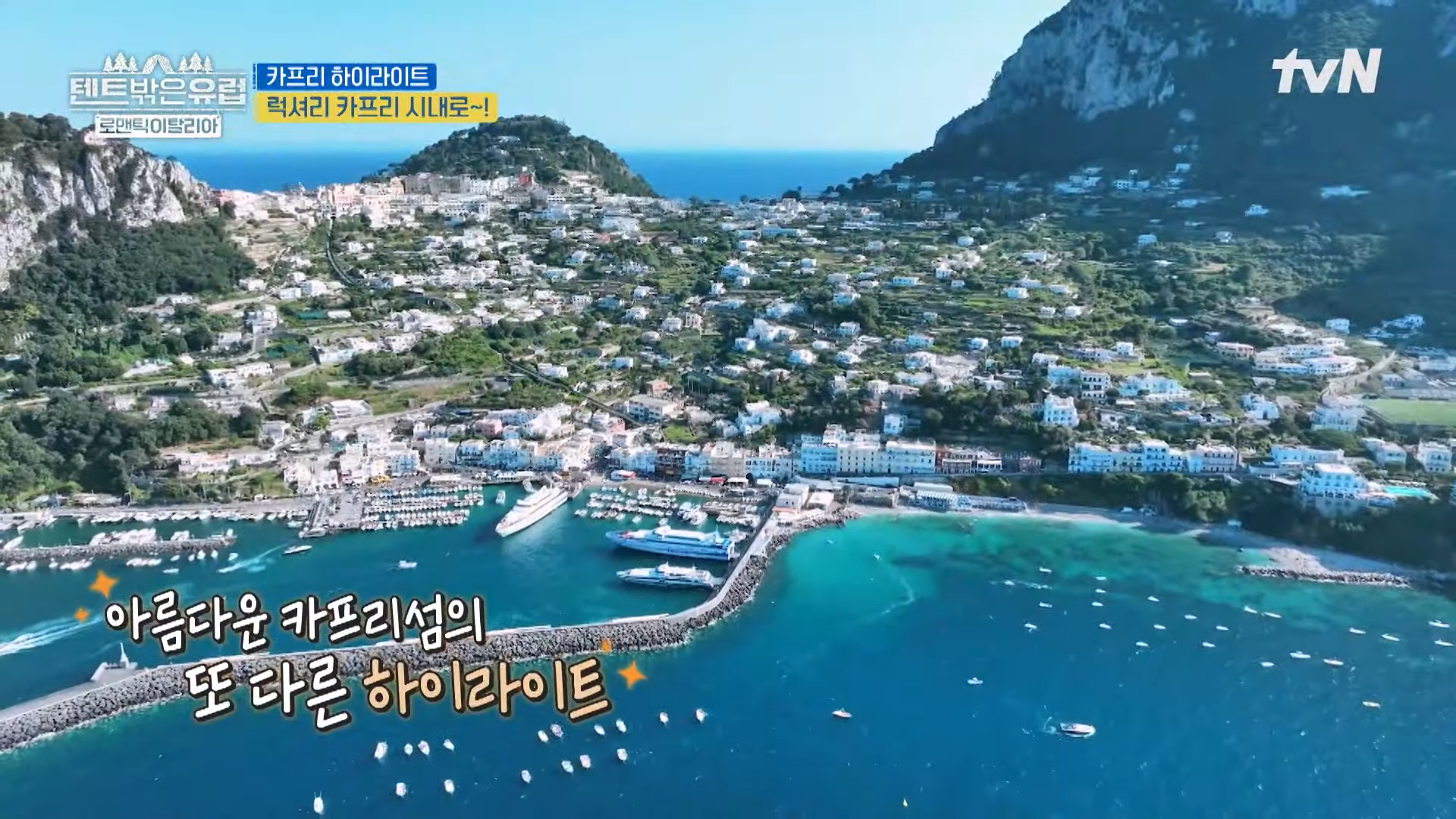 tvN ‘텐트 밖은 유럽 - 로맨틱 이탈리아 편’은 매주 목요일 오후 8시 40분 방송되며, 이탈리아의 숨겨진 매력을 엿볼 수 있는 좋은 기회입니다. 카프리섬의 아름다움을 느끼며 여러분도 로맨틱한 여행을 상상해 보세요!
