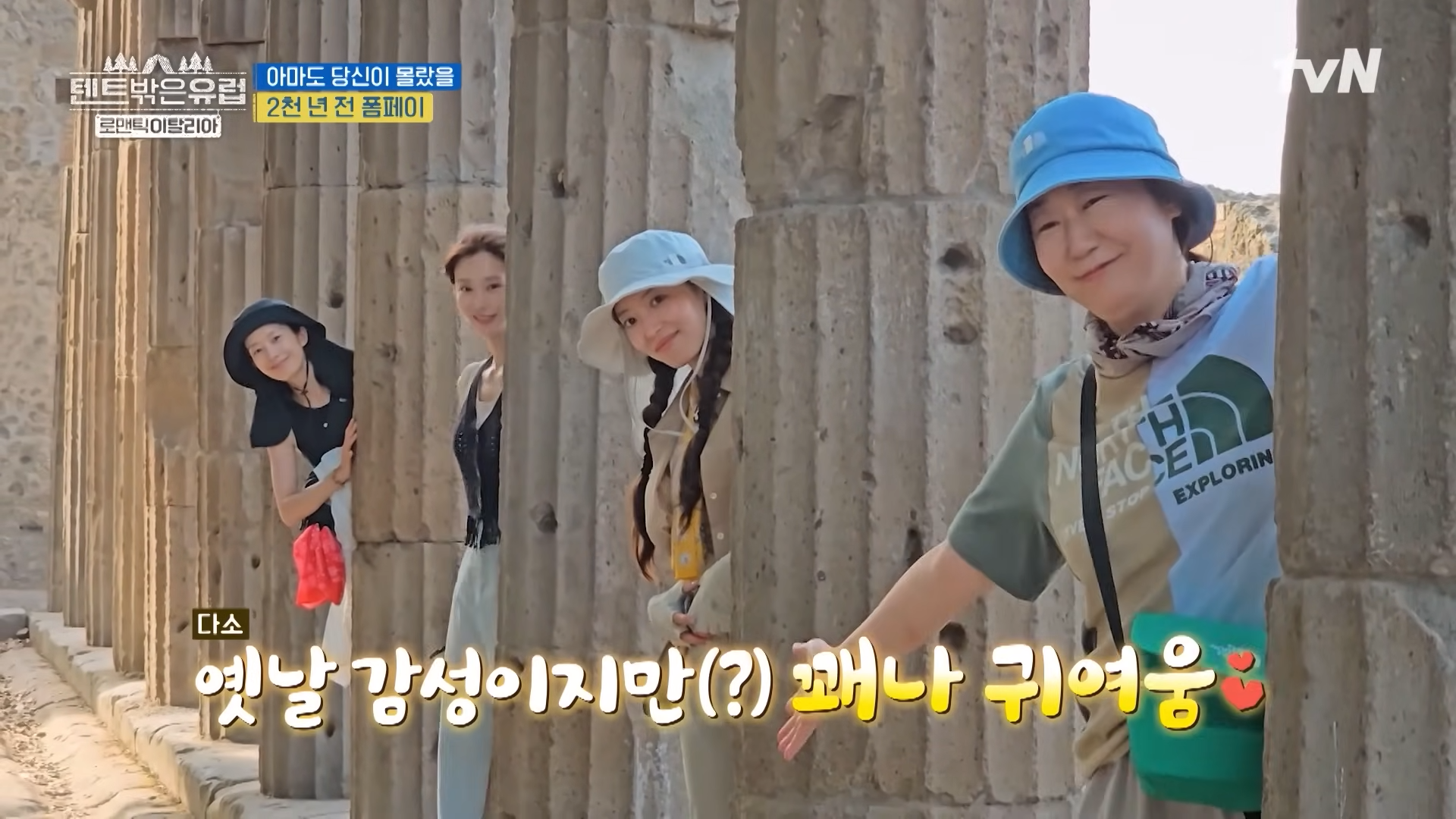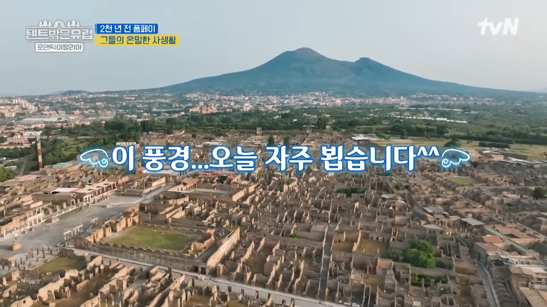 tvN의 인기 예능 프로그램 ‘텐트 밖은 유럽 - 로맨틱 이탈리아 편’이 이번에는 고대 로마의 숨결을 간직한 폼페이로 떠났어요. 매주 유쾌한 케미와 함께 감탄을 자아내는 여행기를 보여주는 텐