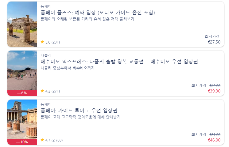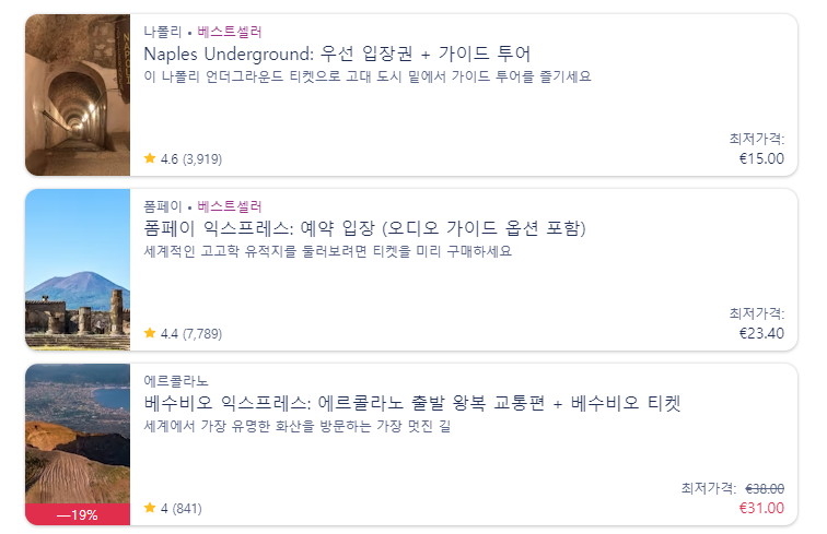 폼페이와 나폴리는 가까운 거리 덕분에 이동이 편리합니다.
