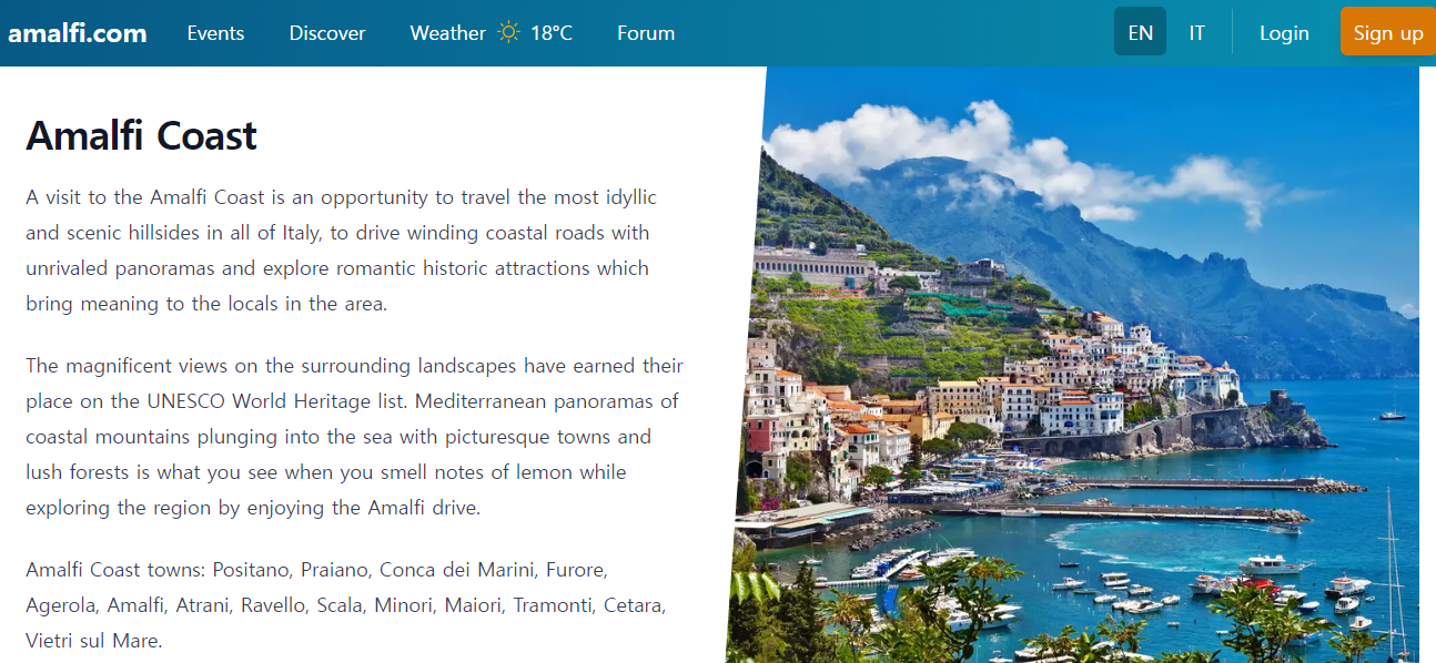 아말피 여행을 계획 중이라면 공식 웹사이트에서 여행 경로, 지역 이벤트, 추천 코스 등을 미리 확인하여 더욱 알찬 일정을 준비해보세요.