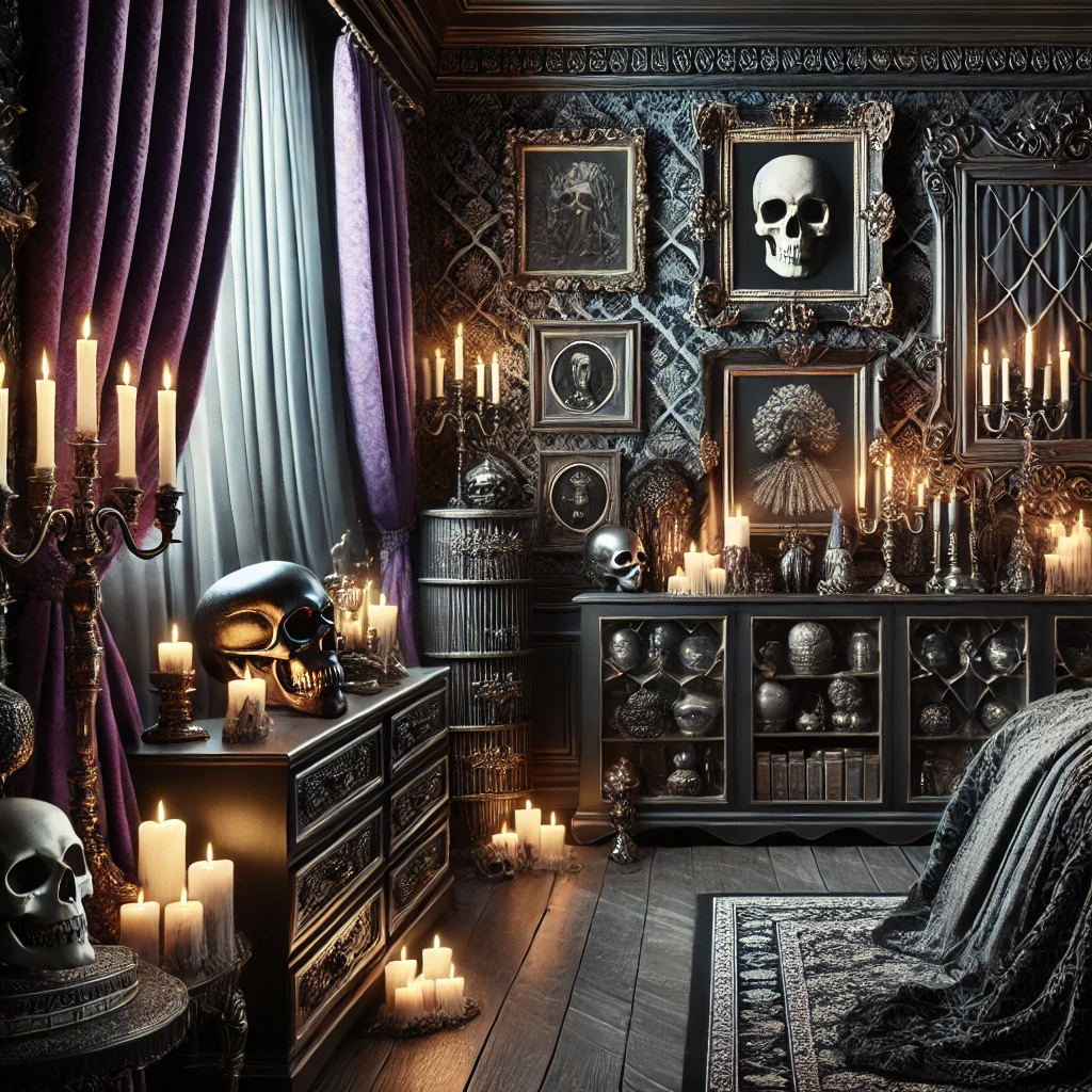 최근 몇 년간 트렌드로 떠오른 고딕 스타일 장식은 할로윈과 매우 잘 어울립니다. 검은색과 보라색을 주요 색상으로 사용하여, 어두우면서도 세련된 분위기를 연출할 수 있습니다. 촛불, 해골 소품, 고풍스러운 액자 등을 이용해 고딕 양식의 클래식한 느낌을 더할 수 있습니다. 또한, 고딕 스타일의 커튼이나 침대보를 이용해 집 안 곳곳에 어두운 느낌을 더하면 마치 영화 속에 나오는 고딕 성에 온 듯한 분위기를 연출할 수 있습니다.