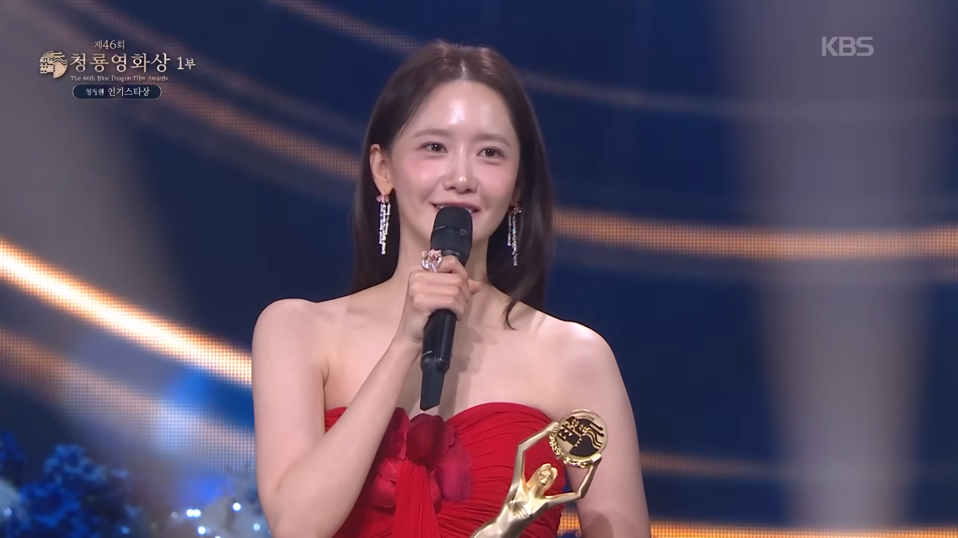 “27살에 처음 청룡 여우주연상을 받았는데, 오늘은 엄마가 되어 다시 받게 됐어요. 인생의 또 다른 챕터에 큰 의미가 되어 줄 상이에요. 우리 가족 고마워요.”