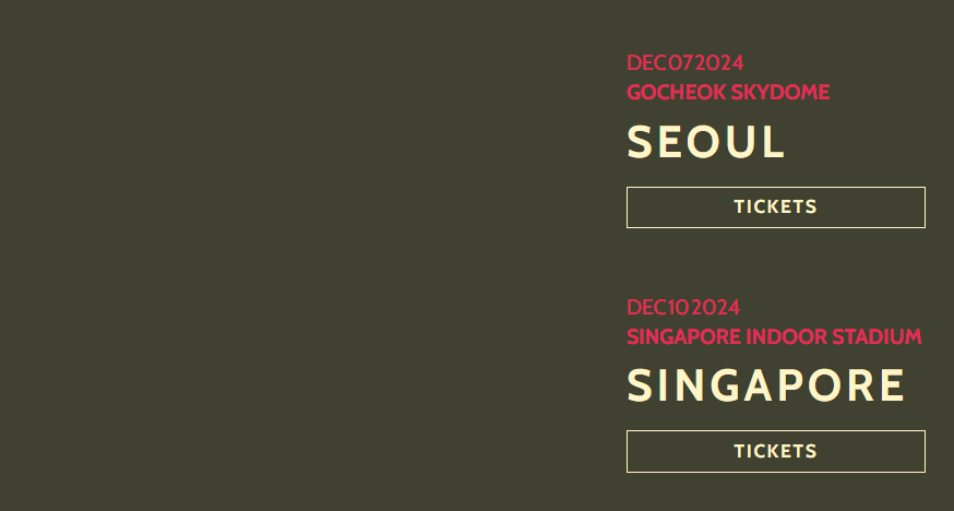 제가 걱정하고 있는 건 찰리 푸스 험페이지에는 서울 일정이 나와있는데 아직 라이브네이션에 일정표가 안올라 있다는 것이에요. 타이완과 싱가포르 사이 7일 일정에 서울이 빨리 올라와야 하는데 말이죠!