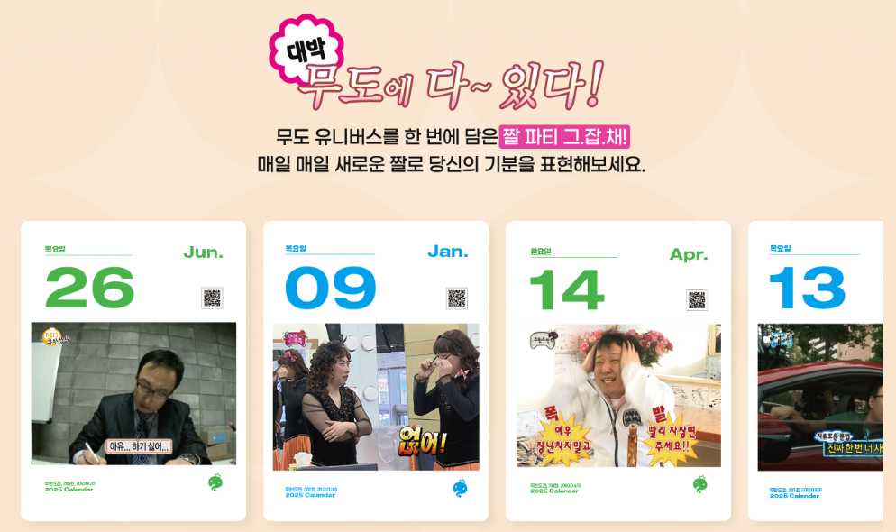 2025 무한도전 20주년 기념 달력은 팬들에게 특별한 추억을 선사하며, 단순한 달력을 넘어 소장 가치 높은 기념품으로 자리 잡았습니다. 사전예약을 통해 한정판 혜택을 받거나 오프라인 매장에서 직접 구매하며 무한도전과 함께 2025년을 맞이해 보세요. 이번 기회를 놓치지 마세요!