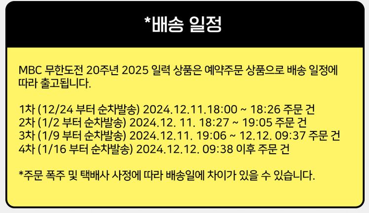 - 4차 배송 : 2025년 1월 16일 시작