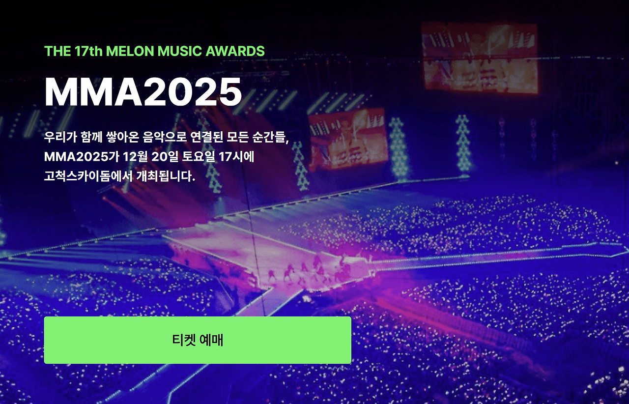 2025 MMA 멜론뮤직어워드는 멜론티켓에서만 단독으로 예매 가능하며, 두 번의 티켓팅 기회가 주어져요. 티켓팅 경쟁률이 높기 때문에 각 일정과 준비사항을 정확히 알고 있는 것이 아주 중요해요.