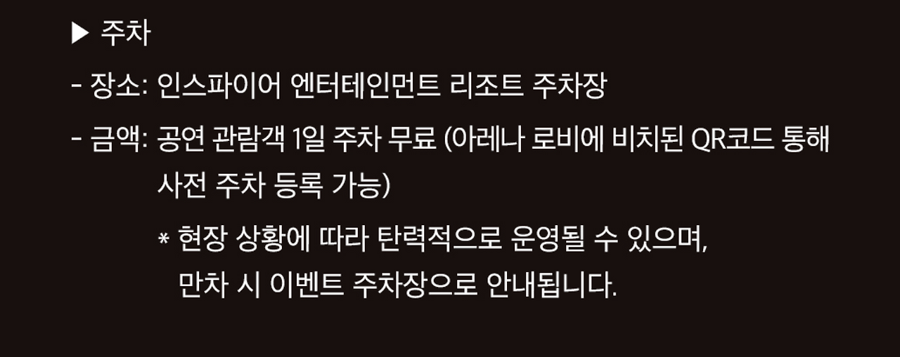 📍 공연 당일엔 혼잡할 수 있으니, 일찍 도착하거나 대중교통도 고려해 보는 것도 좋아요.
